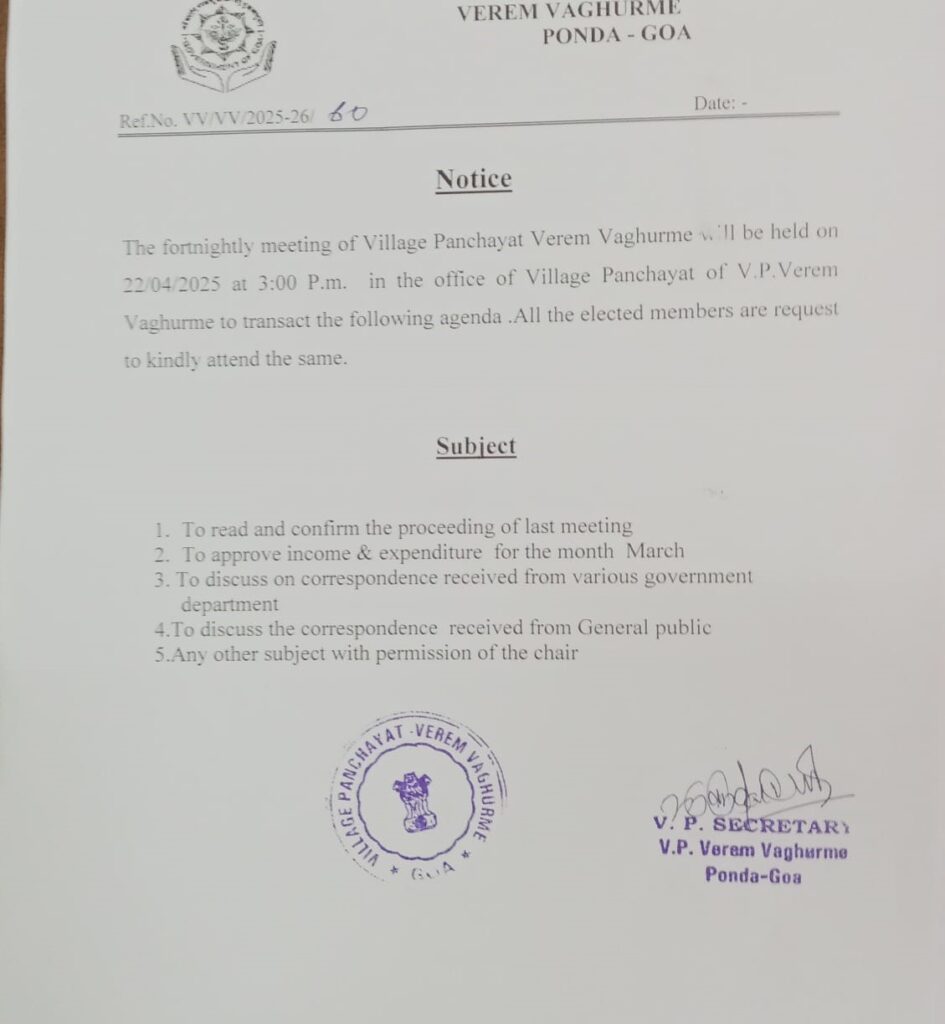 Fortnightly meeting notice 22/04/2025